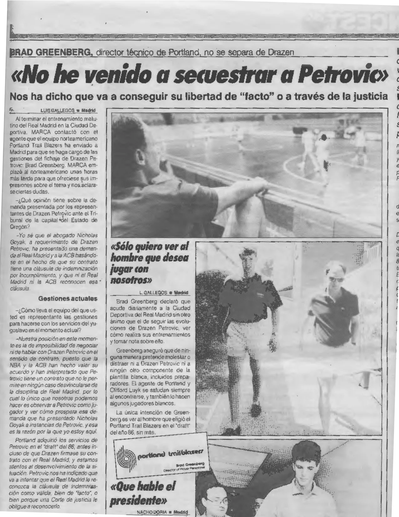 Brad's first overseas trip was to Madrid, Spain to try and get Drazen Petrovic to leave Real Madrid and join the Portland Trail Blazers. After some complicated legal negotiations he ended up fulfilling his dream and became a NBA player.